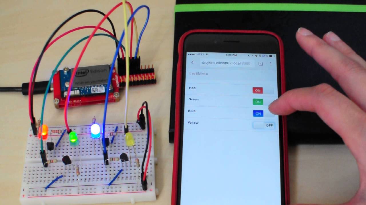 Building a web-based remote control for LED lights using Intel Edison, Node.js, and WebSockets.